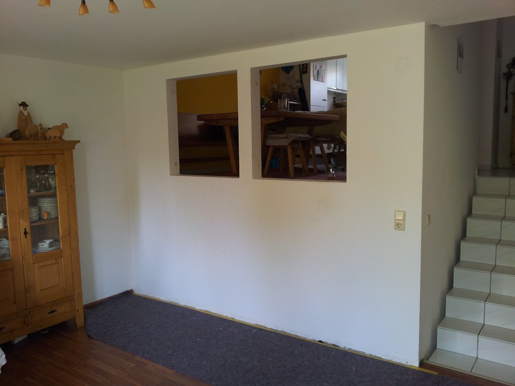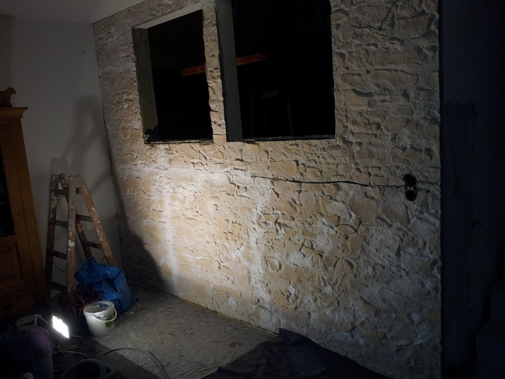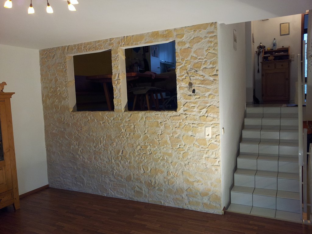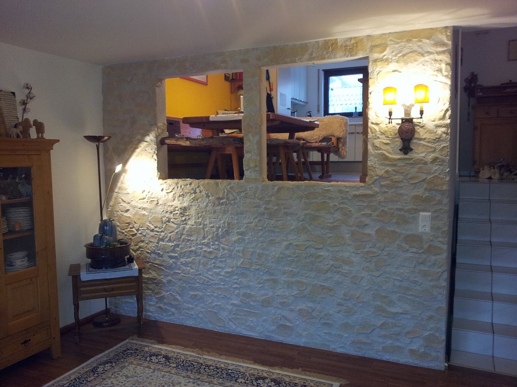 Nachher: Eine Steinwand verleiht dem Raum neues Flair