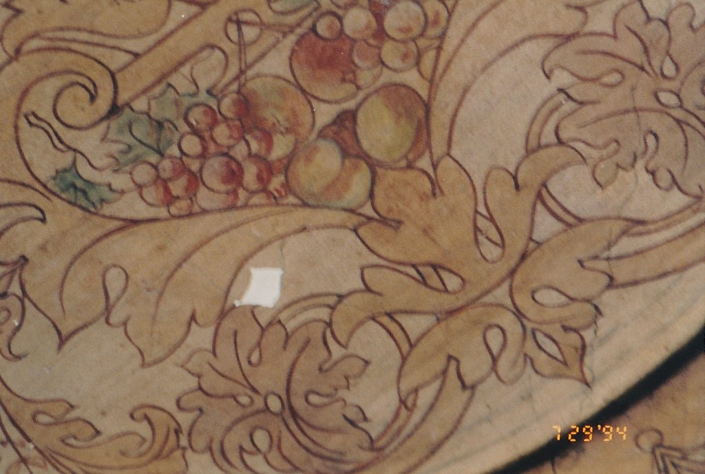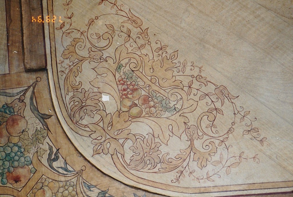 Deckenbemalung: Historismus Detail: Fehlstellen vor der Festigung