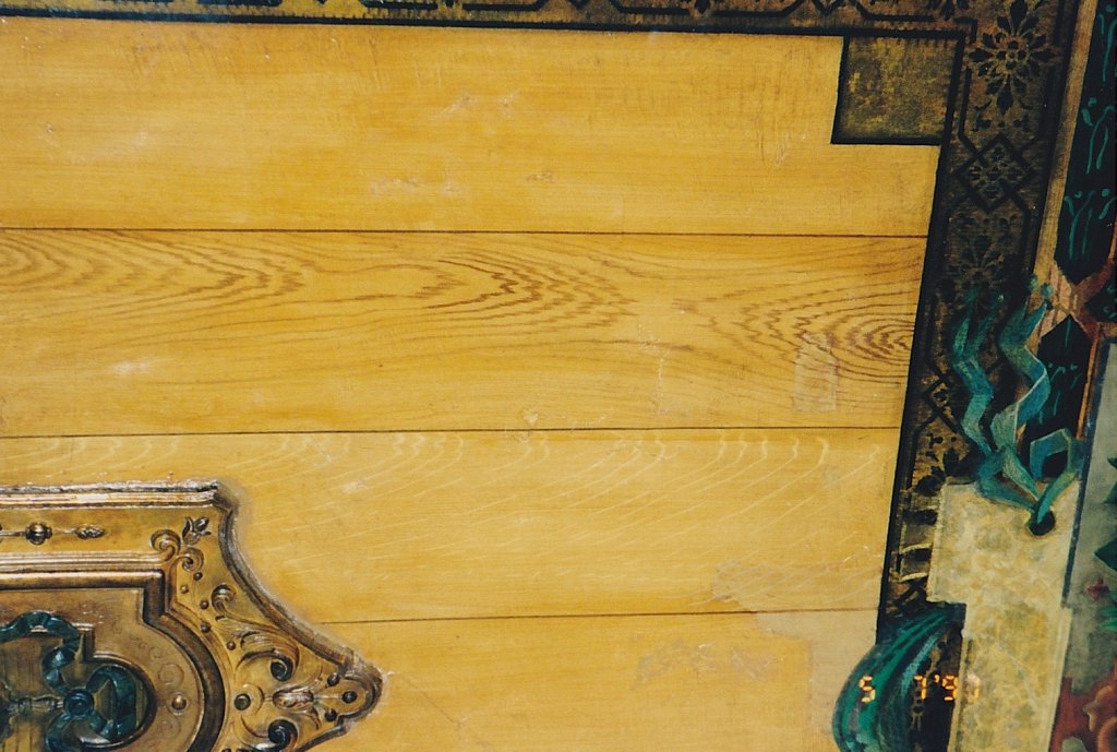 Deckenbemalung: Historismus Dokumentation: Fehlstellen vor der Festigung