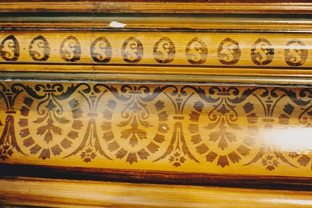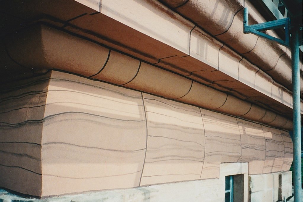 Bemaltes Stuckgesims: Historismus Dokumentation: Fehlstellen vor der Festigung